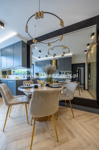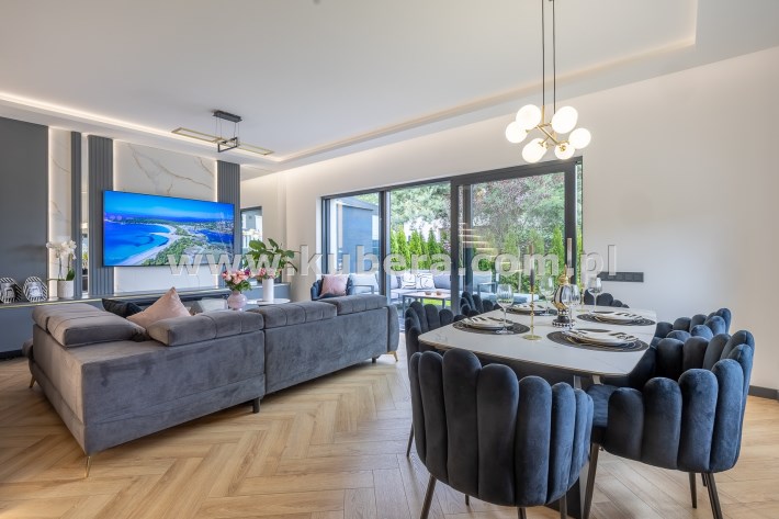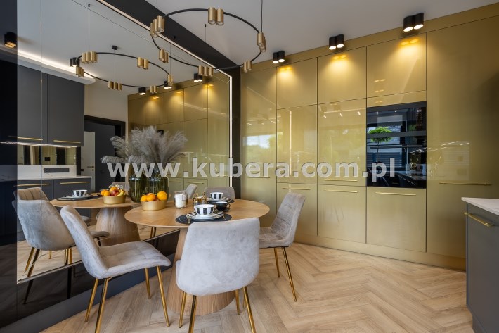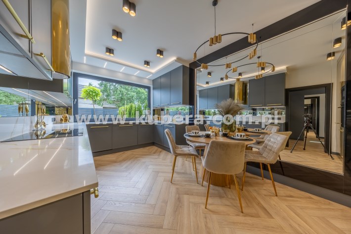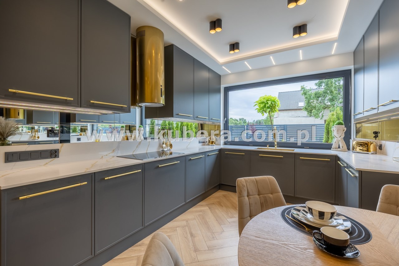 • Stylowa kuchnia: Przestronna, z dużym oknem, doskonale doświetlona i wyposażona w najnowszy sprzęt oraz zabudowę kuchenną, stanowiąca serce domu. Jej nieprzeciętny design z pewnością zachwyci każdego miłośnika gotowania.