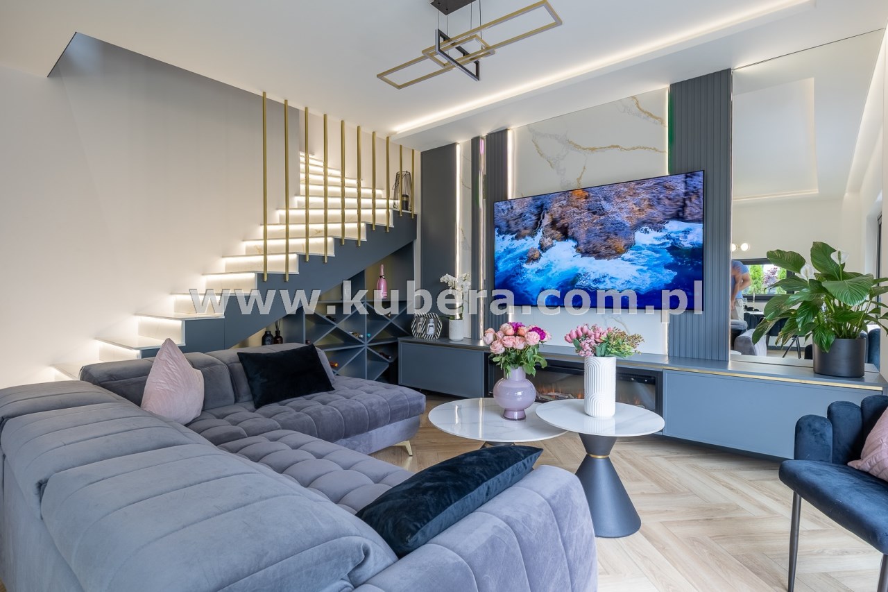 Ten luksusowy dom z 2024 roku o powierzchni 125,23 m² to kwintesencja elegancji i nowoczesności, wynikająca z bezpośredniej współpracy z renomowanym architektem wnętrz. Każdy detal, od starannie dobranych materiałów po inteligentne rozwiązania, został zaprojektowany z myślą o komforcie i estetyce.