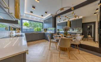 • Kuchnia o powierzchni ponad 17,00 m² – elegancka, funkcjonalna i pełna naturalnego światła, z dużym kamiennym blatem roboczym.