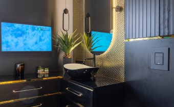 • Luksusowa łazienka (5,34 m²) z wanną i telewizorem to prawdziwa strefa relaksu.