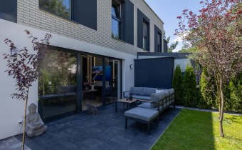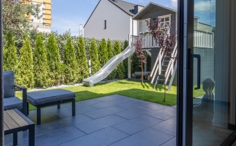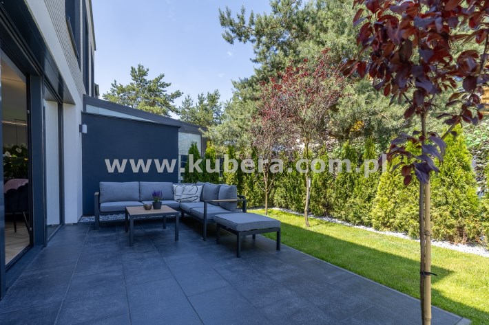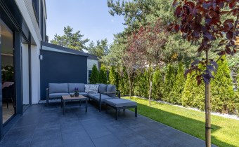 • Zagospodarowany ogród z dużymi nasadzeniami: Zielona ściana z 70 tui oraz trzy majestatyczne 3-metrowe drzewa tworzą intymną atmosferę.