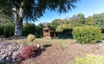 Całość usytuowana jest na dużej działce o powierzchni 1645 m², która została częściowo zaaranżowana zasadzoną roślinnością, a uroku dodaje duże, majestatyczne dębowe drzewo tuż przy altance.