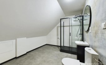 Piętro zostało całkowicie wyremontowane, posiada 3 przestronne pokoje z nowymi panelami, świeżo pomalowane ściany, nową łazienkę oraz solidne schody.