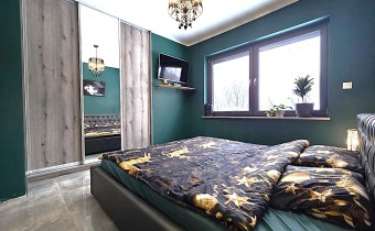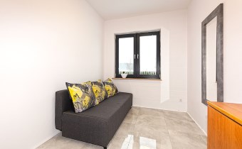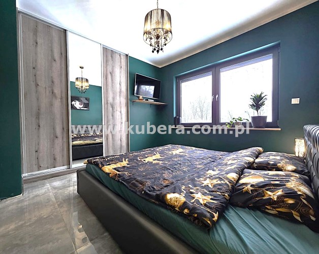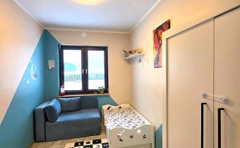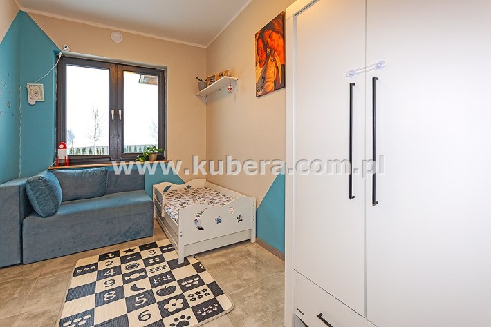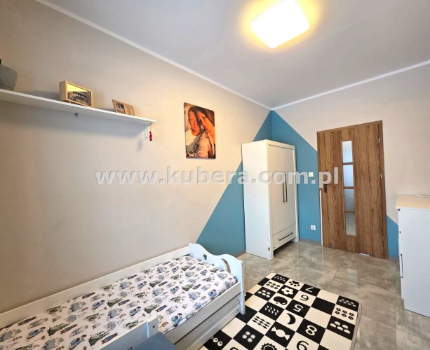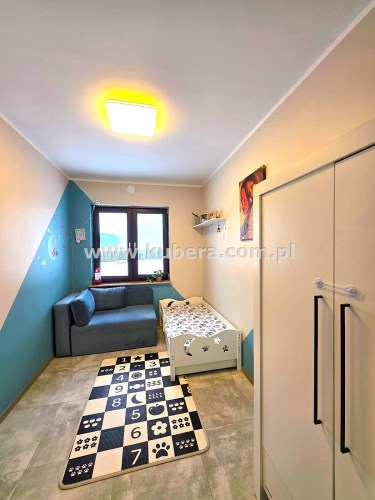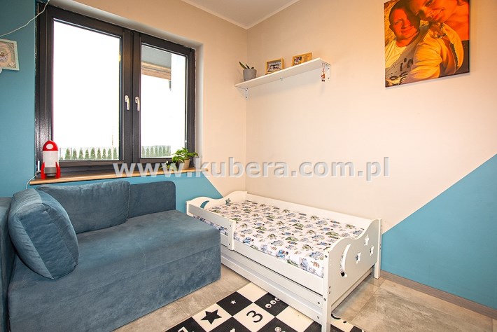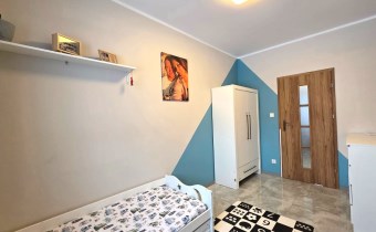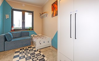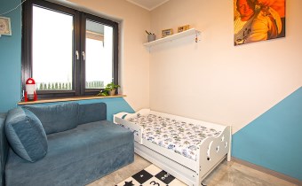 Dom oferuje trzy niezależne pokoje (3x ok 10m2), które dają każdemu domownikowi własną, intymną przestrzeń. Główna sypialnia to miejsce wyciszenia – z dużym łóżkiem, pojemną szafą typu Komandor i atmosferą sprzyjającą odpoczynkowi po długim dniu. Naprzeciwko jedna z sypialni, w której Wasza pociecha może mieć swój niezależny kąt, ale i czuć bezpieczeństwo bliskością rodziców.