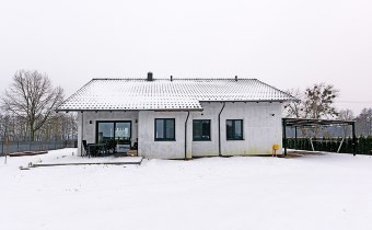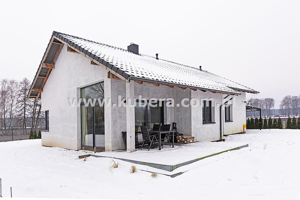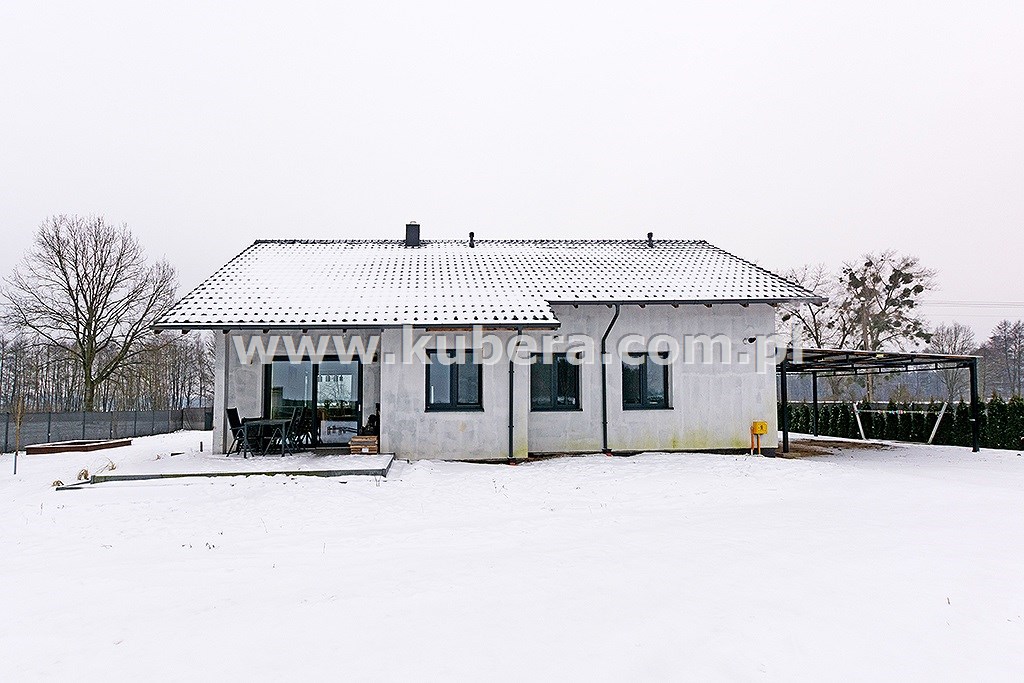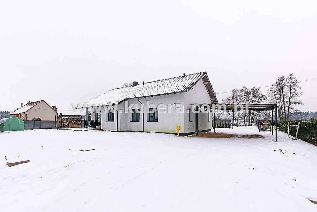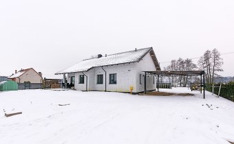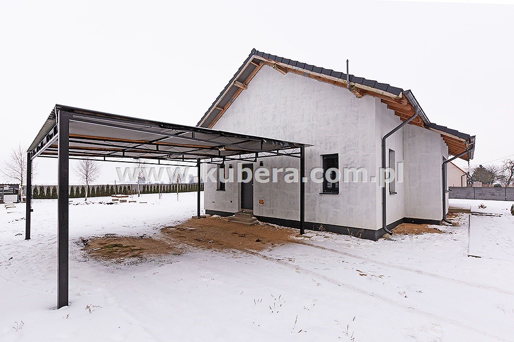 Przy domu natomiast jest posadowiona wiata stalowa na dwa auta, z której suchą stopą można wejść do domu przez dodatkowe boczne drzwi w kotłowni.