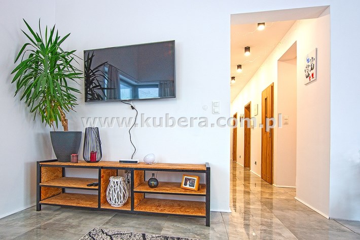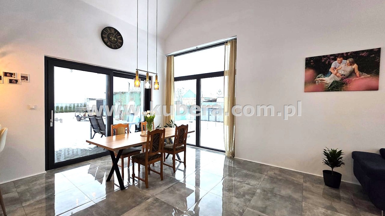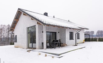 Całość dopełnia ogrzewanie podłogowe w całym domu, trzyszybowe okna oraz rozwiązania zapewniające niskie koszty utrzymania (3800-4200 zł/ rok za gaz), dzięki czemu komfort idzie w parze z rozsądną ekonomią.