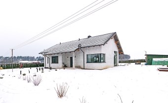Na dużej, 1 646-metrowej działce, pośród ciszy i prywatności, znajduje się wolnostojący dom jednorodzinny o powierzchni całkowitej 106,19 m², zaprojektowany według sprawdzonego projektu „Dom w Winobluszczu” firmy Archon. To propozycja dla osób, które szukają nie tylko budynku, ale prawdziwego domu z charakterem – przytulnego, a jednocześnie nowoczesnego i ekonomicznego w utrzymaniu. Powierzchnia użytkowa domu to niecałe 100 m2 (plus kotłownia, razem daje 106,19 m2)