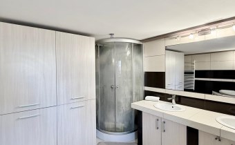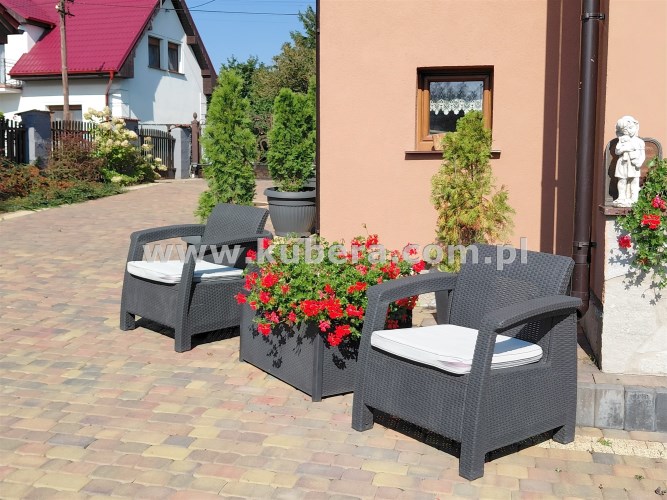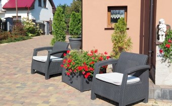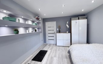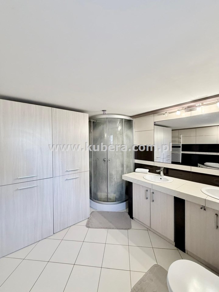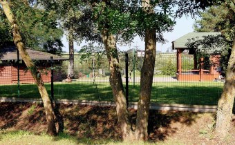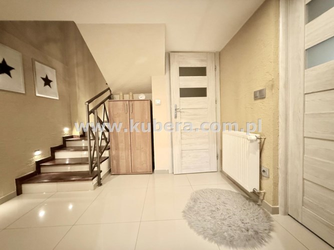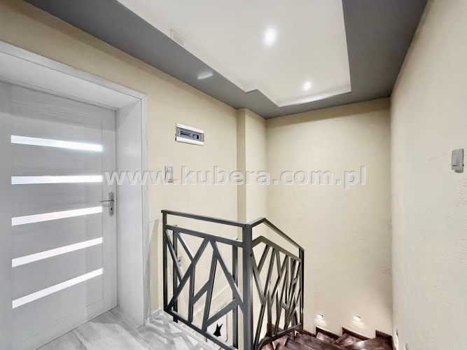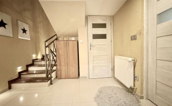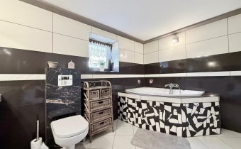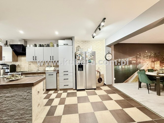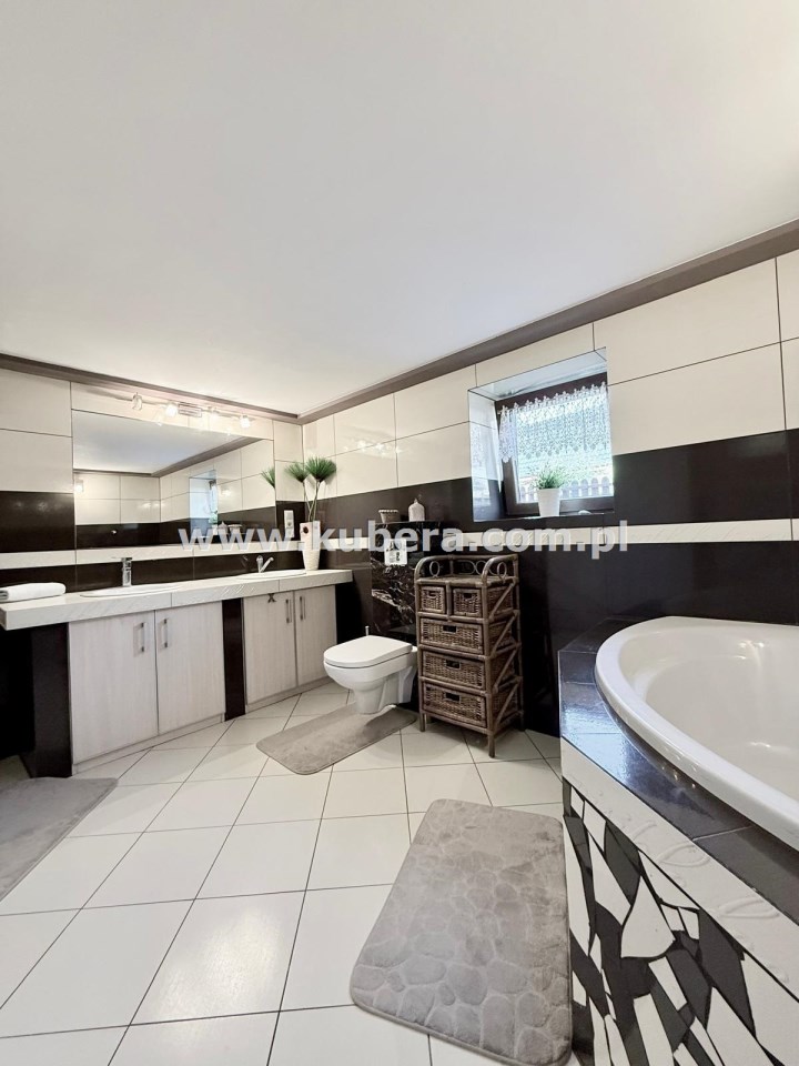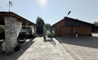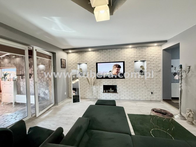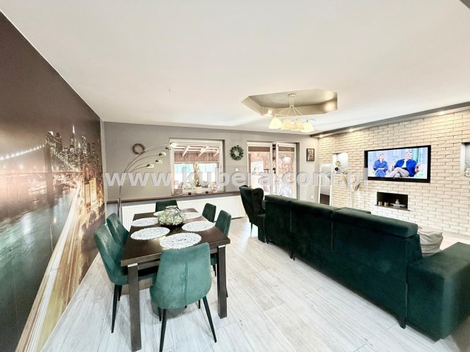 Z salonu wyjście na zabudowaną werandę/taras - idealne miejsce na spotkania w gronie znajomych. Na parterze domu znajdziemy sypialnię i urządzoną siłownię. Łazienka z oknem - wanną i prysznicem oraz pojemną szafą, która pomieści wszystko, co w łazience niezbędne. Oddzielnie wc. Na piętrze znajdziemy dwie przytulne sypialnie, a z jednej z nich piękny widok na beztroskość i sielskość przyrody. Bonusem domu jest kawalerka o powierzchni 45 m2 z oddzielnym wejściem. Może być idealnym miejscem dla przyjezdnych rodziców, dorastającego nastolatka :) czy też na oddzielne miejsce dla działalności gospodarczej. Dla lubiących majsterkowanie dom oferuje przestronny warsztat wielkości około 44 m2- tu każdy majsterkowicz znajdzie swój kawałek przestrzeni :). Jest również kotłownia. Na zabudowanym tarasie znajdziemy miejsce do biesiadowania ze stołem, krzesłami i grillem. Na posesji znajdziemy dwa garaże, budynek gospodarczy i kojec dla psiaka . W drugiej części działki mamy przygotowane miejsce na postawienie basenu. Kochający własne uprawy znajdą miejsce na niejedną grządkę czy też szklarnię.