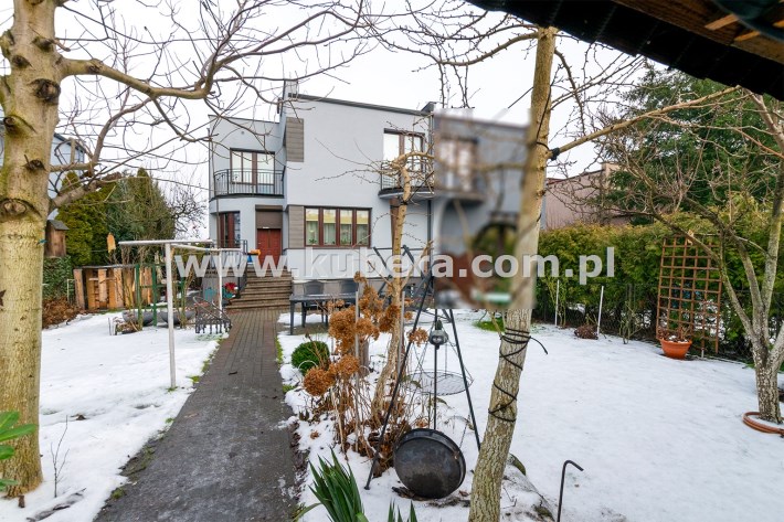 ogród w pełni zagospodarowany, liczne nasadzenia, drzewa: śliwa, orzech, miłorząb. Budynek gospodarczy, wiata na drewno.