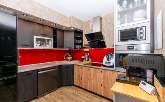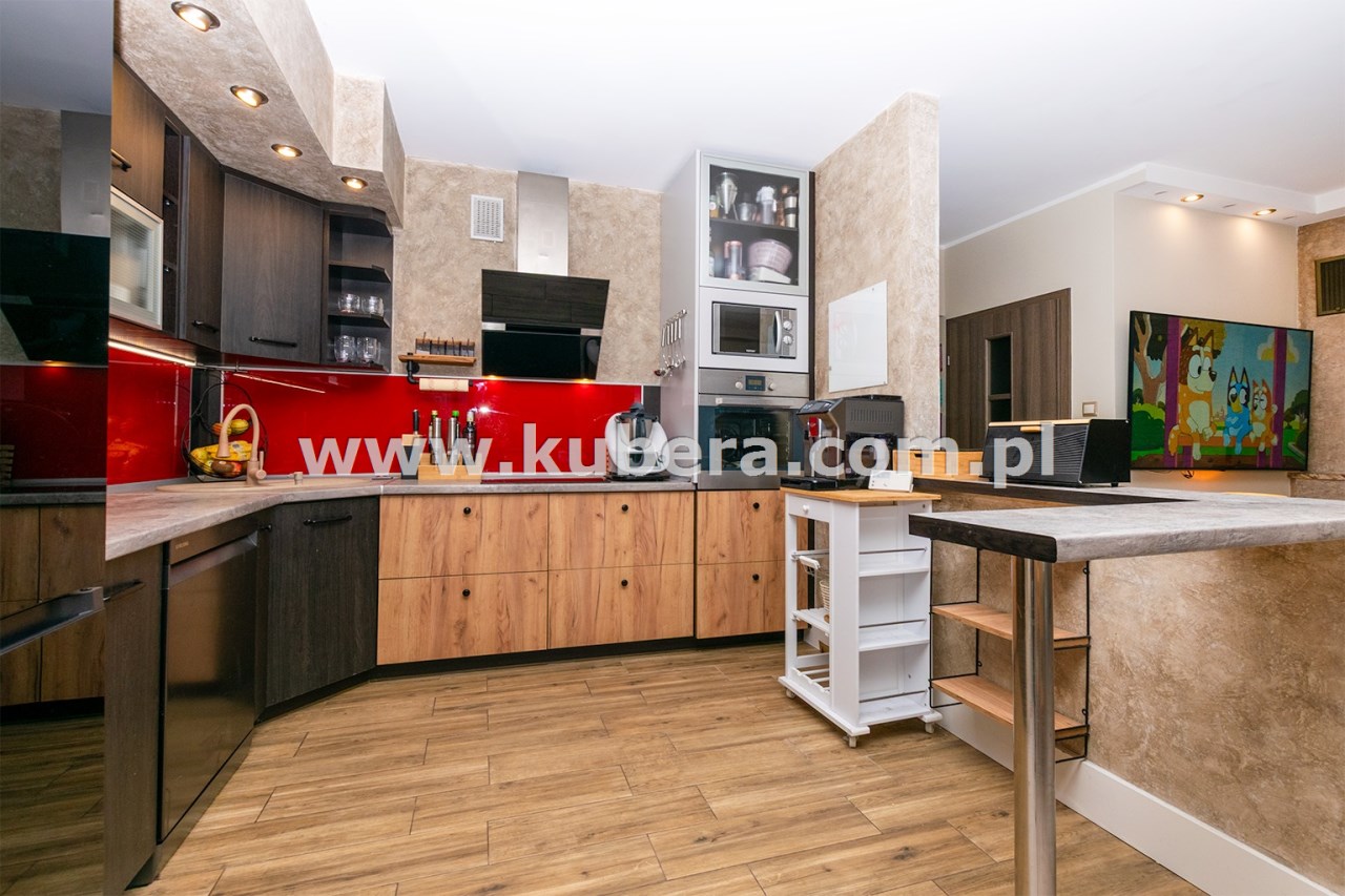 W kuchni zabudowa meblowa wraz ze sprzętem AGD (mikrofala Zelmer, piekarnik Amica, płyta indukcyjna Hotpoint Ariston, Okap Amica, zmywarka Samsung, Lodówka Samsung, (niektóre sprzęty jeszcze na gwarancji).