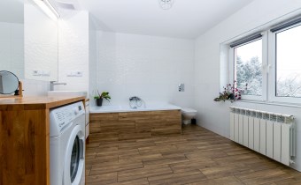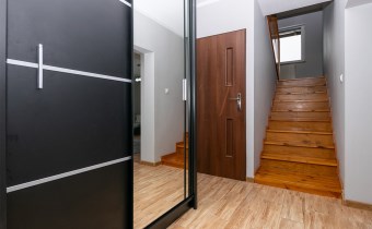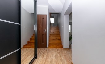 Dom zapewnia bardzo funkcjonalny układ pomieszczeń, garaż w bryle budynku, spokojną lokalizację oraz pełny dostęp do infrastruktury technicznej.