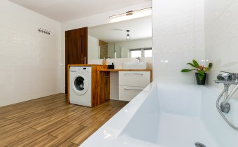 Wyposażenie łazienki umywalka, wanna, WC, lustro, prysznic