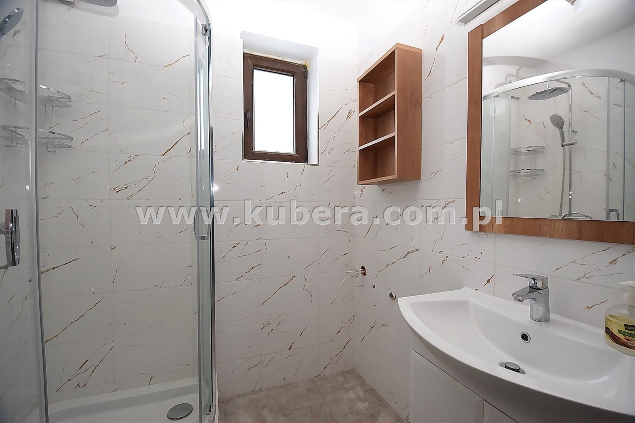 - łazienka z wc ok. 3 m2 (wyposażona w kabinę prysznicową)