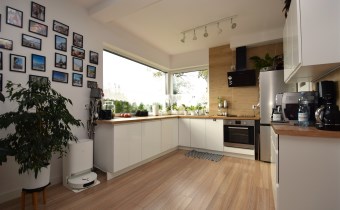 Kuchnia 8 m2 z dużymi oknami, usytuowana bezpośrednio przy salonie + spiżarka.