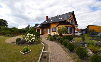 Kocioł na paliwo stałe typu Pelets. Na parterze ogrzewanie podłogowe; na poddaszu- podłogowe w łazience i w przedpokoju, w pokojach grzejniki konwektorowe. Ponadto w salonie kominek elektryczny. Ogrzewanie solarne wody.