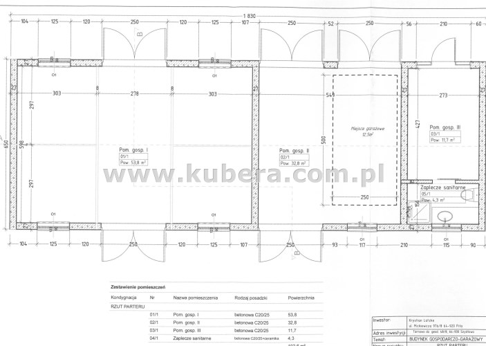 - Pomieszczenie gospodarcze nr 1 – 53,8 m²