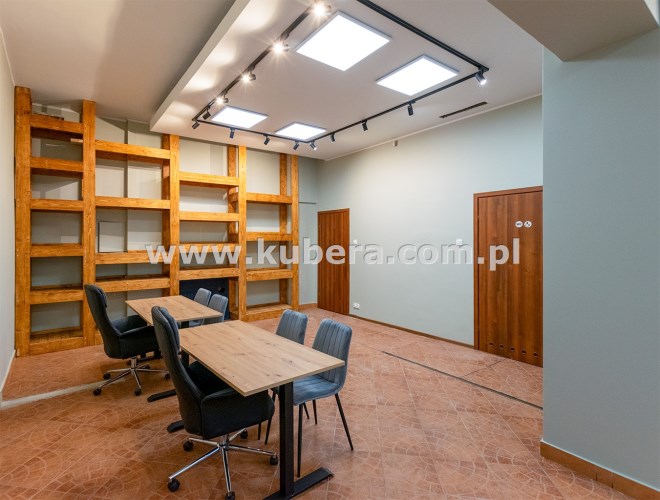 Lokal jest wynajmowany bez mebli, co umożliwia dowolną aranżację przestrzeni.