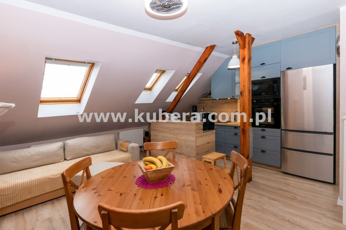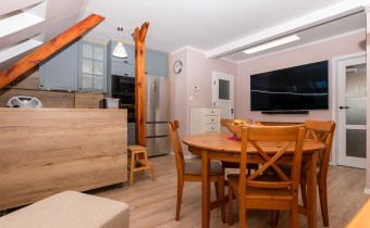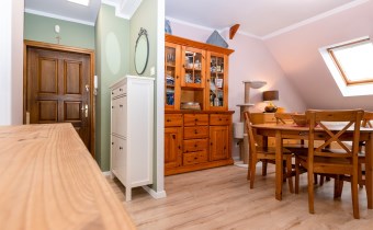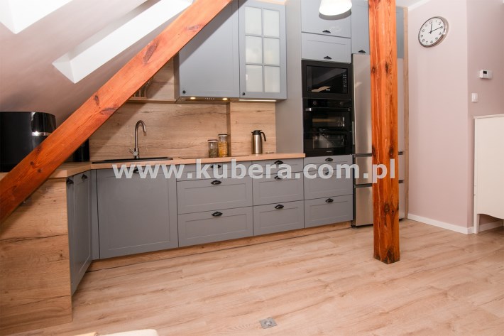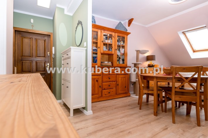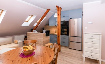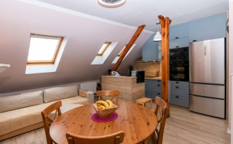 Mieszkanie zostało zaprojektowane z myślą o wygodzie codziennego życia. Ma bardzo przestronny układ, jest doskonale doświetlone przez okna połaciowe wyposażone w rolety wewnętrzne.