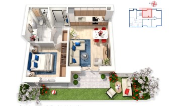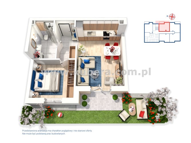 Do mieszkania przynależy komórka lokatorska o pow. 1,95 moraz ogrodzony ogródek położony bezpośrednio przy tarasie.