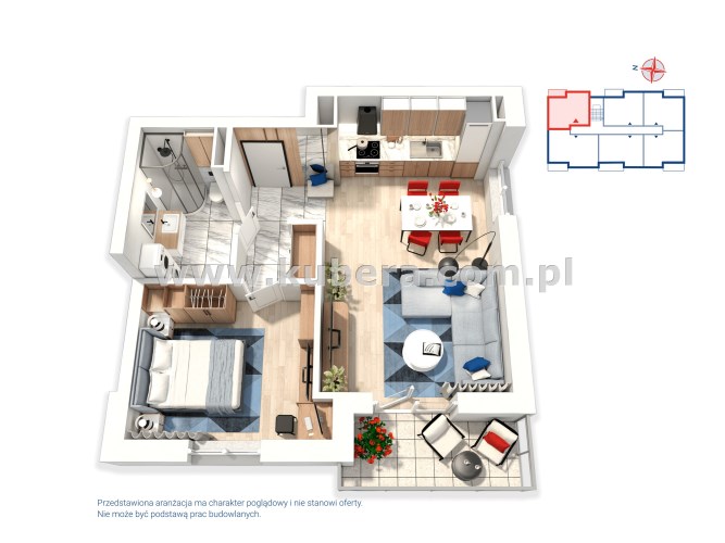 • pokój z aneksem kuchennym o pow. 26,71 m2,