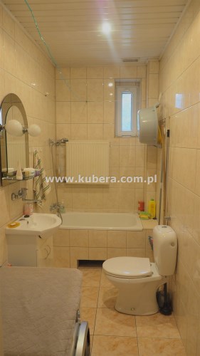 Łazienka wraz z WC z oknem. W łazience wanna.