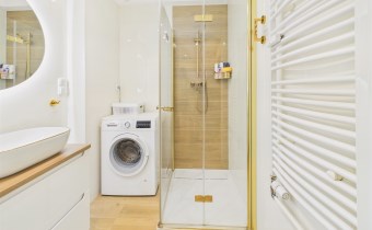 Każdy detal ma znaczenie — eleganckie parapety z konglomeratu, rolety zewnętrzne w całym mieszkaniu zapewniające komfort i prywatność, czy funkcjonalna, jasna, osobna kuchnia, w której gotowanie staje się przyjemnością.