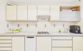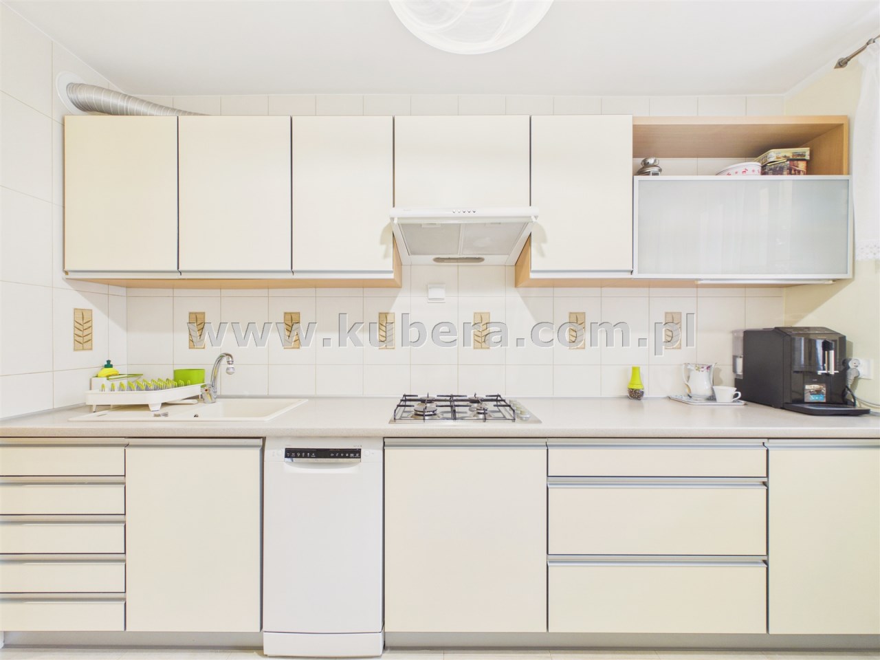 Mieszkanie wyposażone jest w sprzęty AGD: lodówkę Samsung, okap Amica oraz piekarnik Bosch, a także kuchenkę gazową i zmywarkę — wszystko gotowe do użytku od pierwszego dnia.