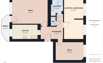 - salonu (18 m2) z wyjściem na uroczy balkon,