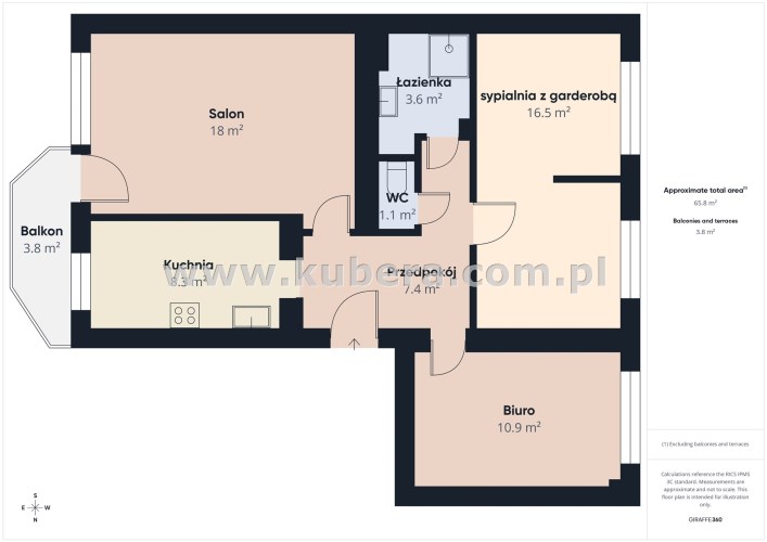 - sypialni, w której obecnie mieści się biuro (10,9 m2),