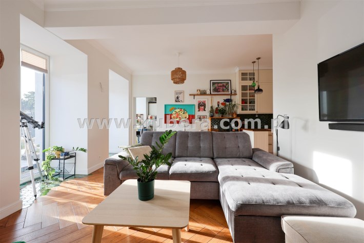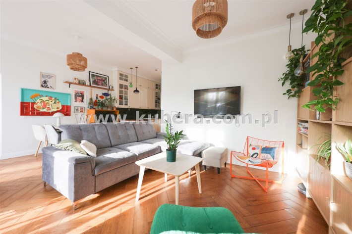 Przestronny i pełen światła, połączony z jadalnią oraz kuchnią.