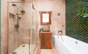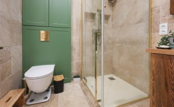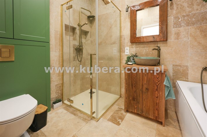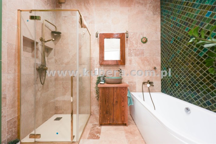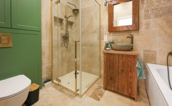 Stylowa i nietuzinkowa – znajdziesz tu zarówno wannę jak i prysznic, co zapewnia pełną wygodę.
