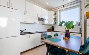 • Widok, który relaksuje: Najwyższe piętro gwarantuje prywatność, brak sąsiadów "nad głową" oraz niesamowitą panoramę miasta, którą możesz podziwiać z balkonu wyposażonego w markizę.