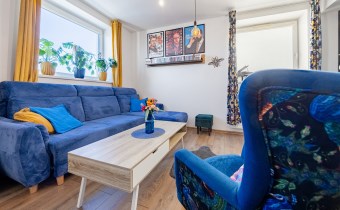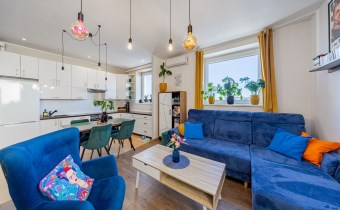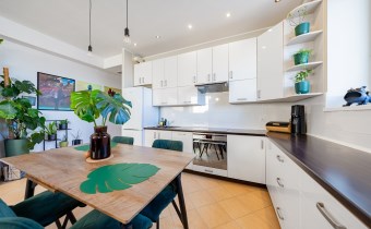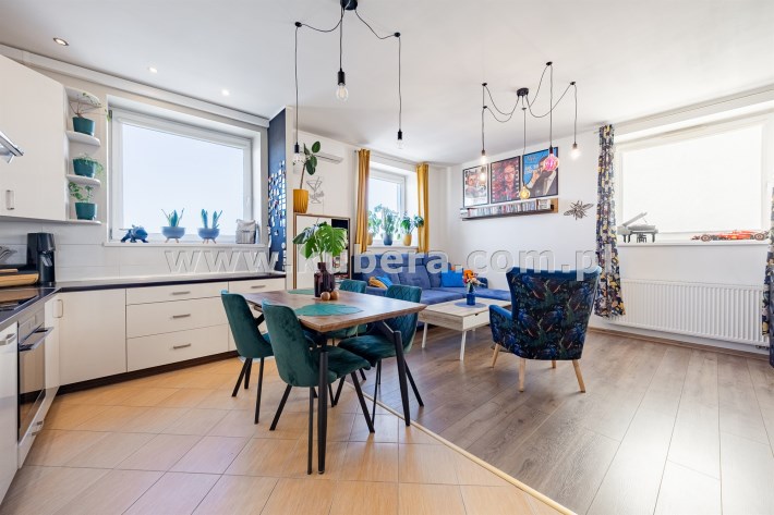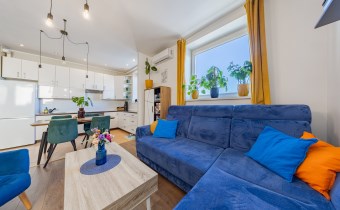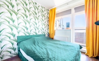 • Widok, który relaksuje: Najwyższe piętro gwarantuje prywatność, brak sąsiadów "nad głową" oraz niesamowitą panoramę miasta, którą możesz podziwiać z balkonu wyposażonego w markizę.