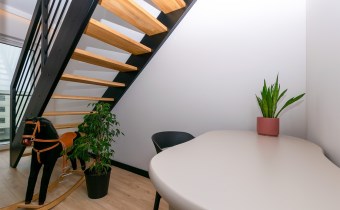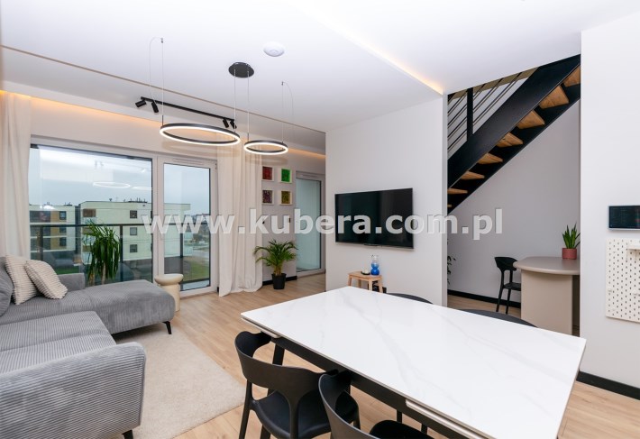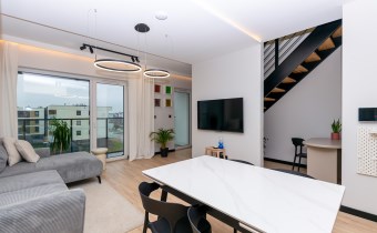 Nowoczesny apartament z antresolą, dwoma balkonami oraz imponującym tarasem.