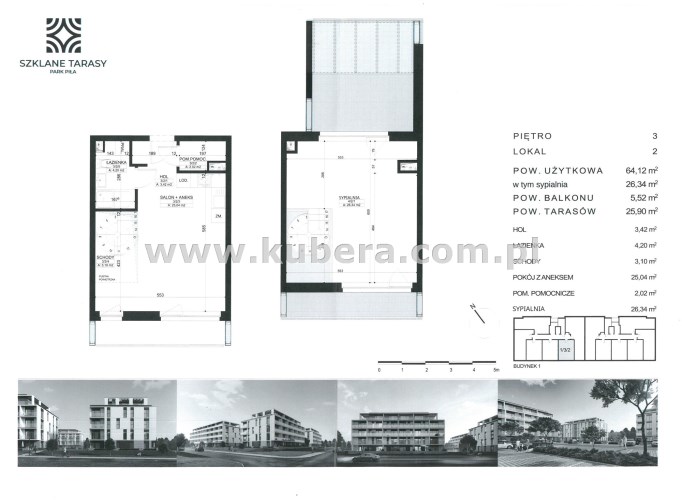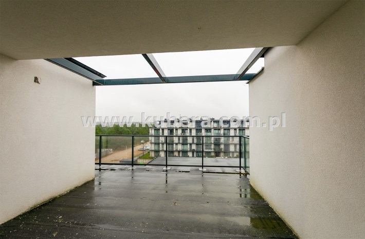 Mieszkania posiada duży, komfortowy taras o pow. 25,90 m2 oraz dwa balkony każdy z nich o pow. 5,52 m2 (po jednym na każdej kondygnacji).