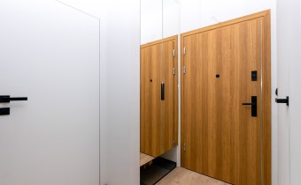 • W przedpokoju szafa typu Komandor z praktyczną dolną wnęką na buty.