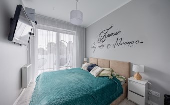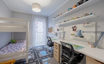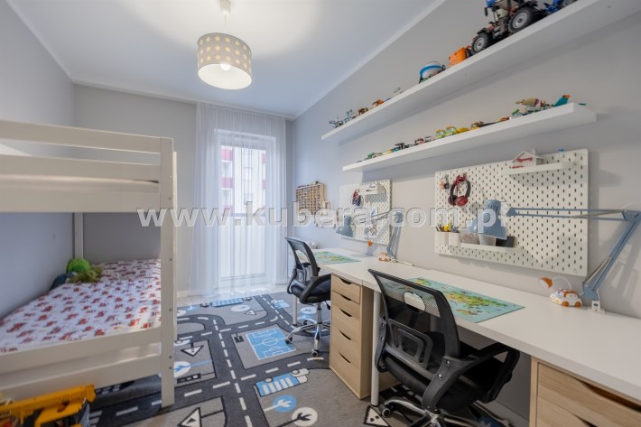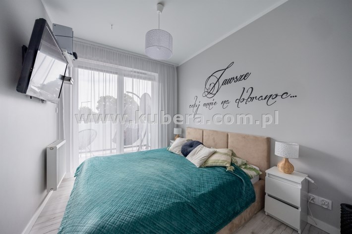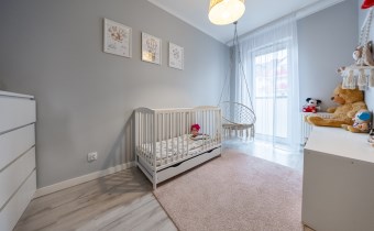 - Trzy Prywatne Sypialnie (pow. 10 m2, 10 m2, 8 m2): Mieszkanie oferuje trzy niezależne sypialnie, zapewniając każdemu członkowi rodziny własną, komfortową przestrzeń. W jednej z sypialni znajdziesz wygodne łóżko i bezpośrednie wyjście na duży balkon.