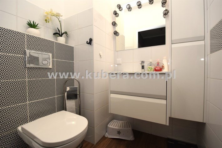 - łazienka (pow. 5,12 m2) z oknem oraz WC (2 m2),