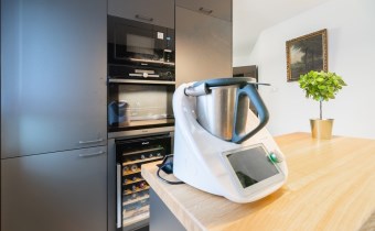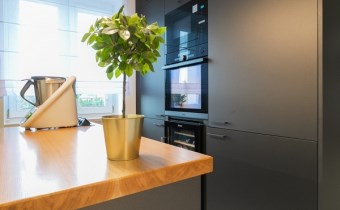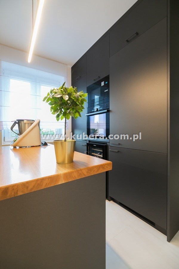 Bezpośrednio przy salonie znajduje się kuchnia w pełni zabudowana i wyposażona w urządzenia AGD, włącznie ze specjalistyczną lodówką dla koneserów wina.