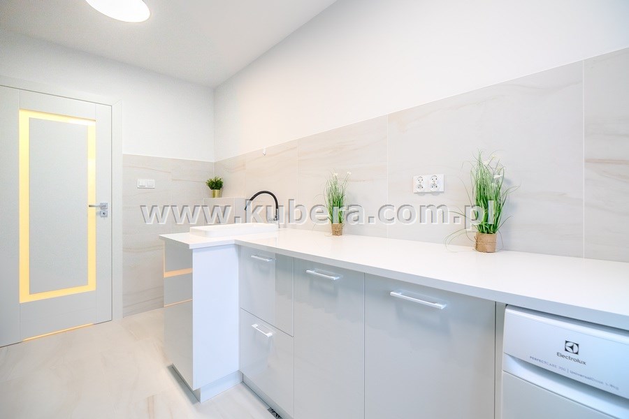Funkcjonalność apartamentu uzupełnia osobne pomieszczenie gospodarcze pełniące rolę pralni, dla wygody użytkowników wyposażone dodatkowo w toaletę.