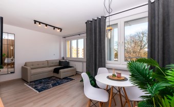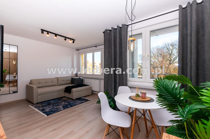 Mieszkanie przeszło generalny remont, dzięki czemu wnętrze prezentuje się nowocześnie i funkcjonalnie, z dbałością o detale i komfort przyszłych lokatorów.